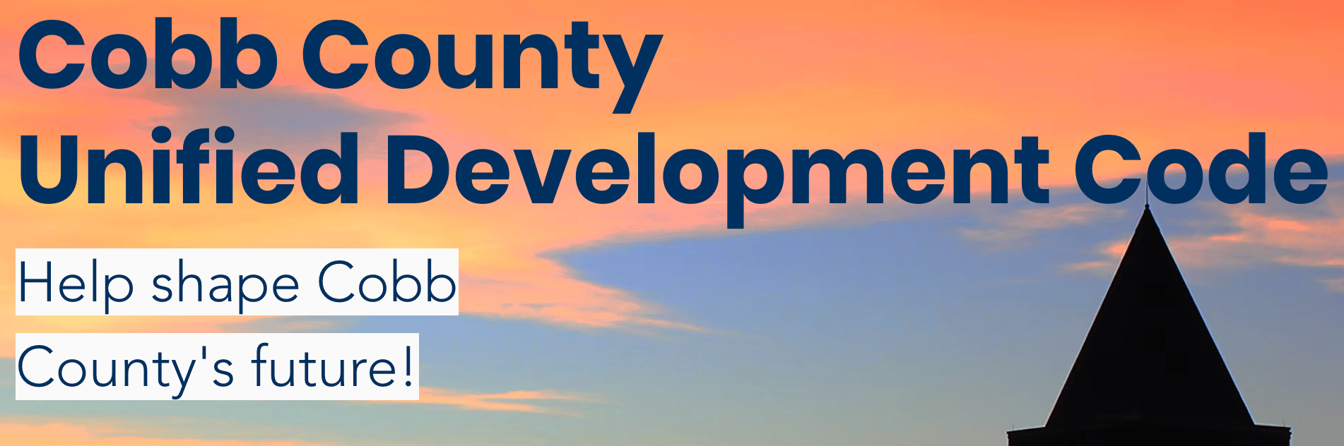 The Unified Development Code, or UDC, is a comprehensive update to how Cobb County organizes and applies zoning and development regulations in unincorporated areas. Rather than changing land uses or rezoning properties, the UDC consolidates existing rules into a single, modern framework. This makes the regulation more transparent, more consistent, and easier for residents, businesses, and developers to understand. The goal is to improve transparency, align regulations with, and ensure future development follows standards that reflect Cobb County communities’ character and needs.